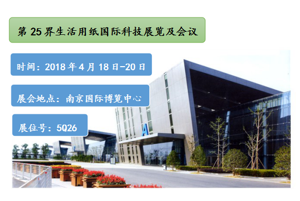 第二十五界生活用紙國際展覽及會議(2018年生活用紙年會暨婦嬰童、老人衛(wèi)生用品展會)將于2018年4月18日-20日在南京國際博覽中心盛大召開。